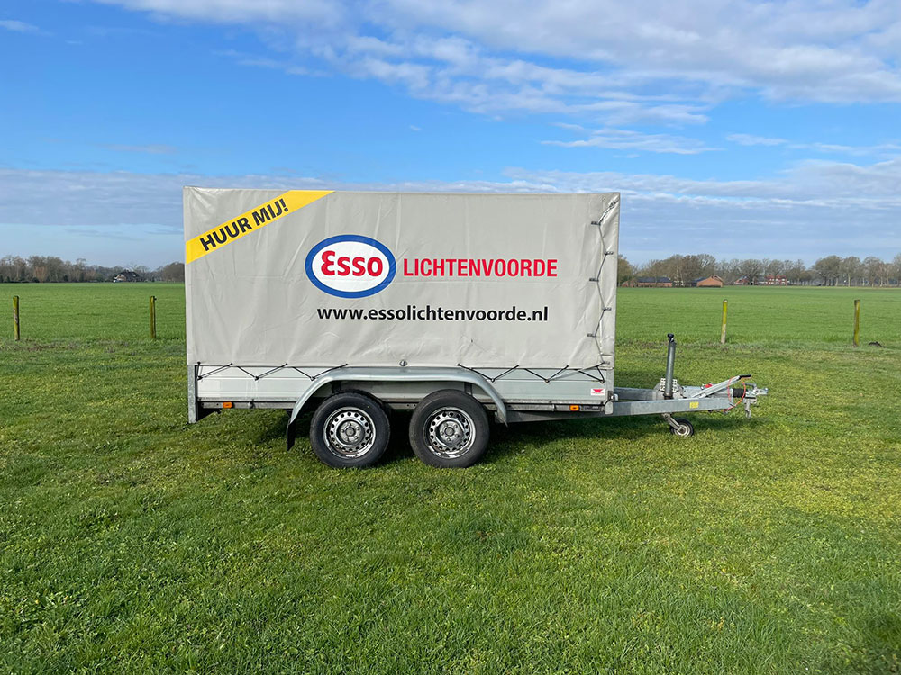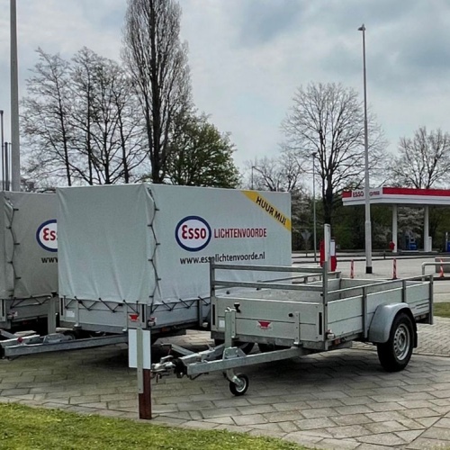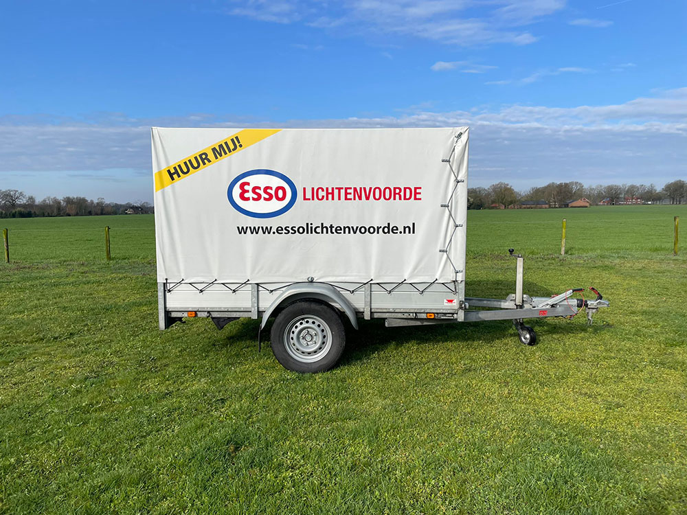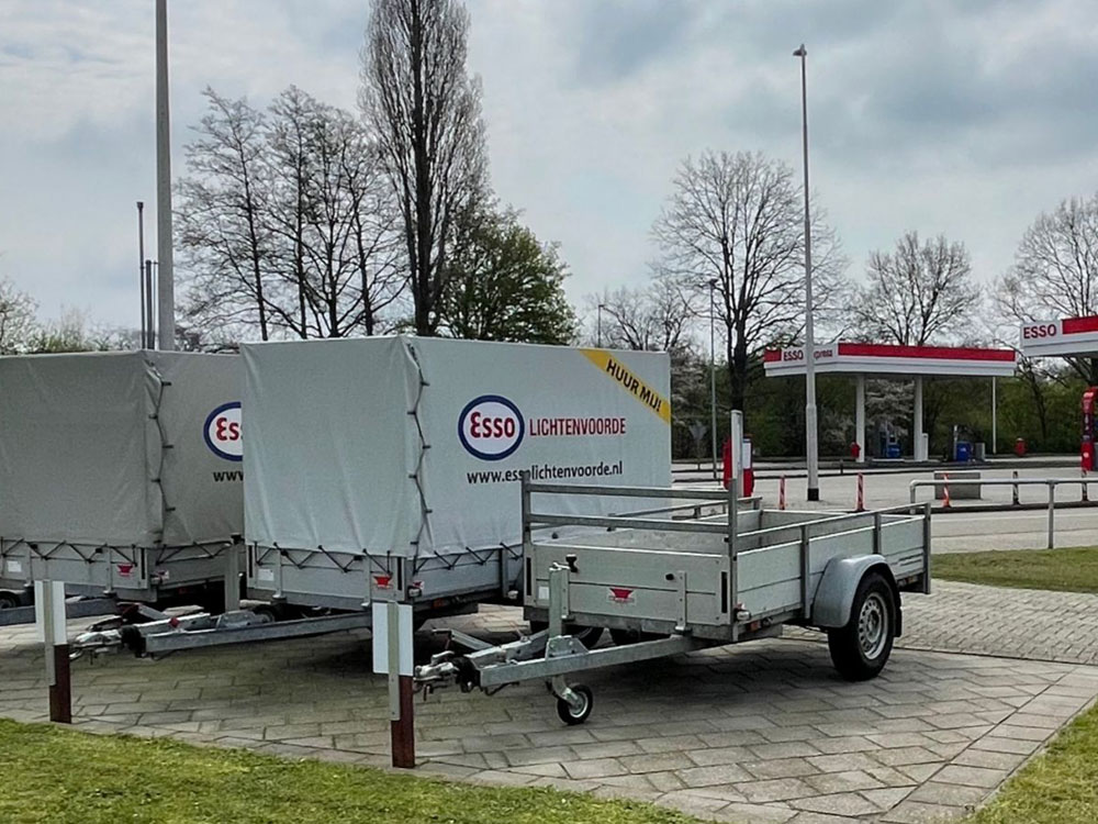 Esso Lichtenvoorde B.V. biedt de mogelijkheid tot het huren van 3 verschillende aanhangers, namelijk een enkel-as zonder huif, een enkel-as met huif en een tandem-as met huif. Voor informatie over de voorwaarden kunt u contact opnemen met Esso Lichtenvoorde (0544-372640).
